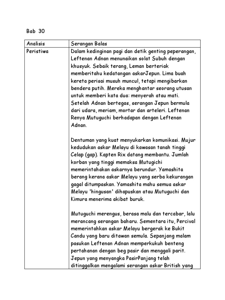 Dalam pertempuran dengan askar Jepun Askar Melayu menunjukkan keberanian dan semangat. Sekian sahaja perkongsian Novel Leftenan Adnan Wira Bangsa. Leftenan Adnan yang bermati-matian mempertahankan Bukit Candu daripada di tawan oleh tentera Jepun.